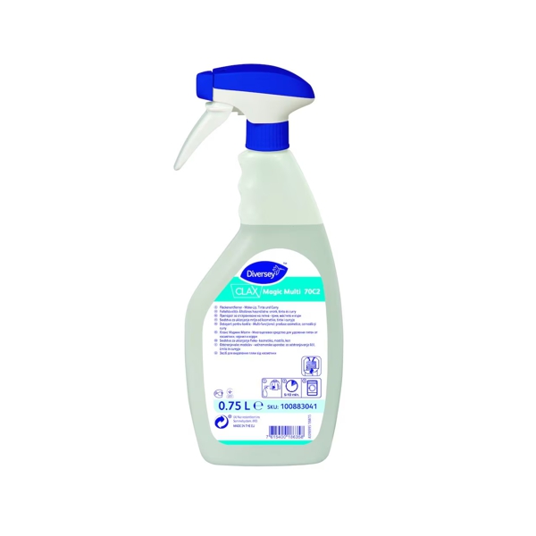Clax Magic Multi este un detașant pentru textile, având proprietăți excelente de îndepărtare a unei varietăți de pete, precum farduri, ruj, cerneală și curry. Produsul are o formulă specială pentru utilizarea în spălătorii profesionale și spălătorii interne și este gata de utilizare pe majoritatea tipurilor de țesături.